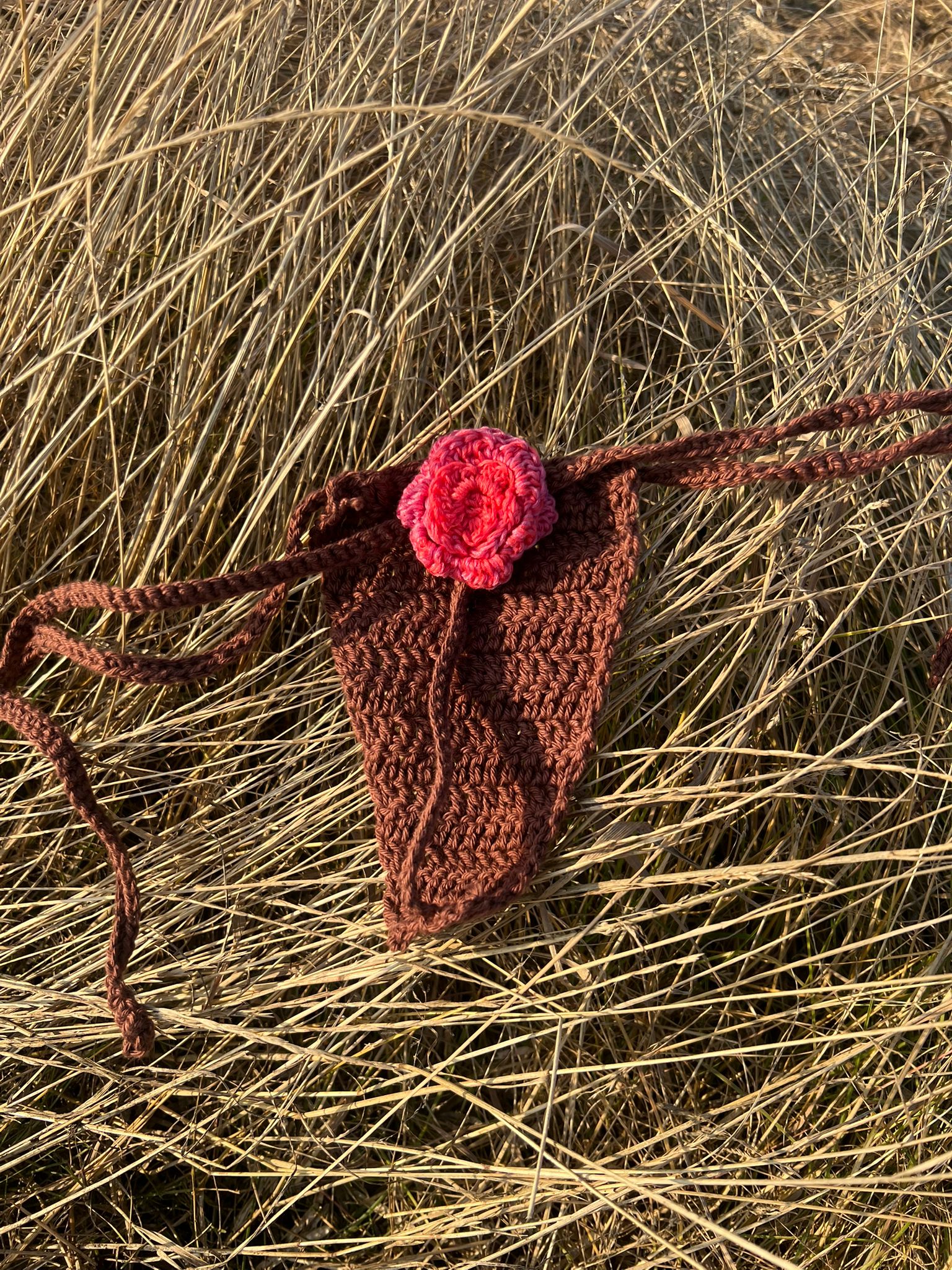 Pink flower Brazilian bikini bottoms. Featuring tie ends, hibiscus flower design, and T-string design.