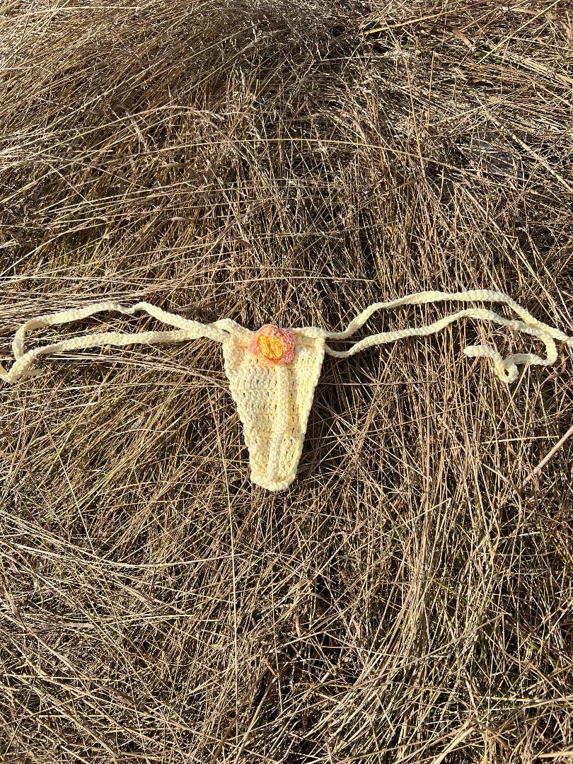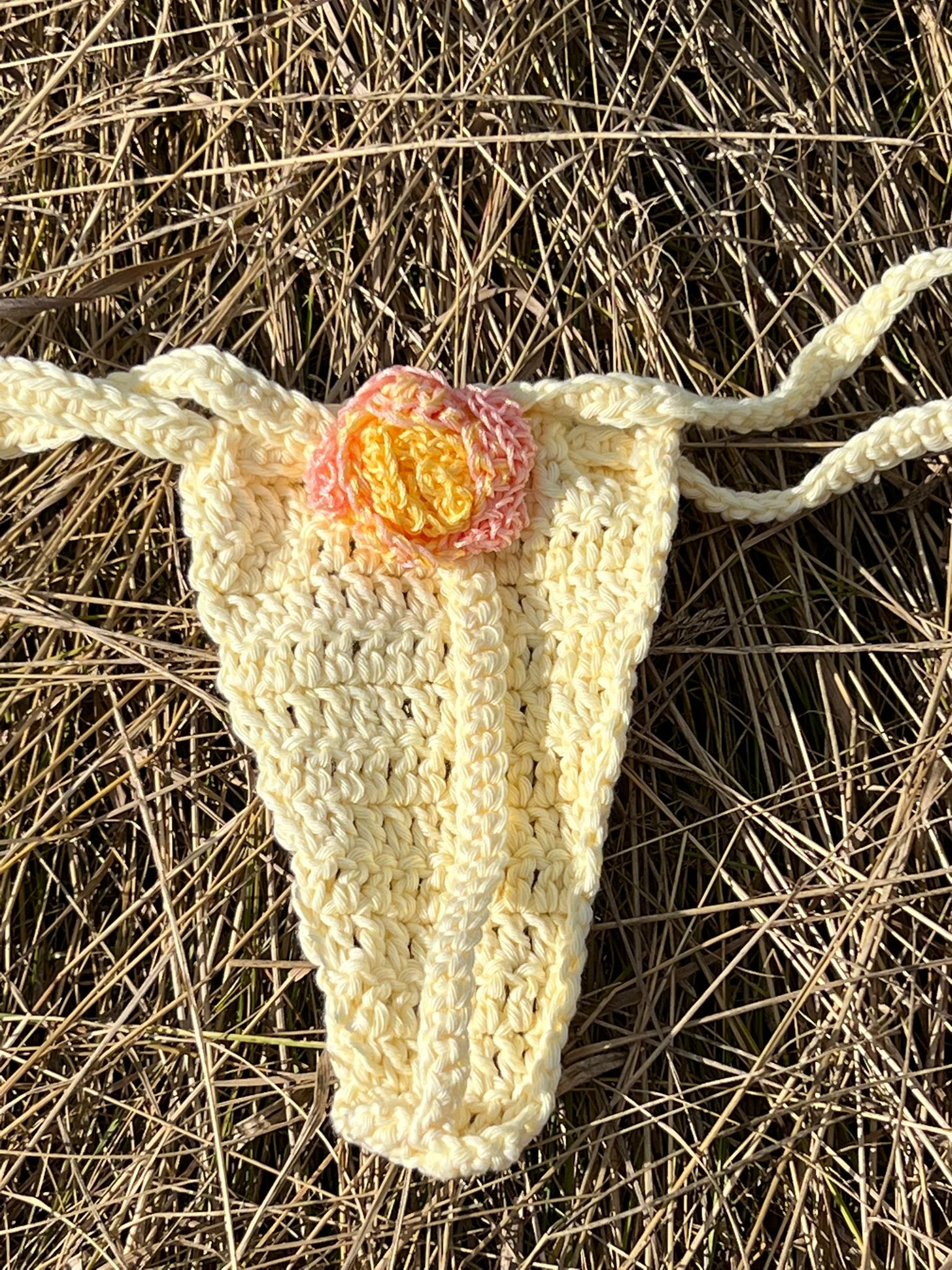 Golden pink flower Brazilian bikini bottoms. Featuring a pink and gold glitter hibiscus flower, and a T-string design.